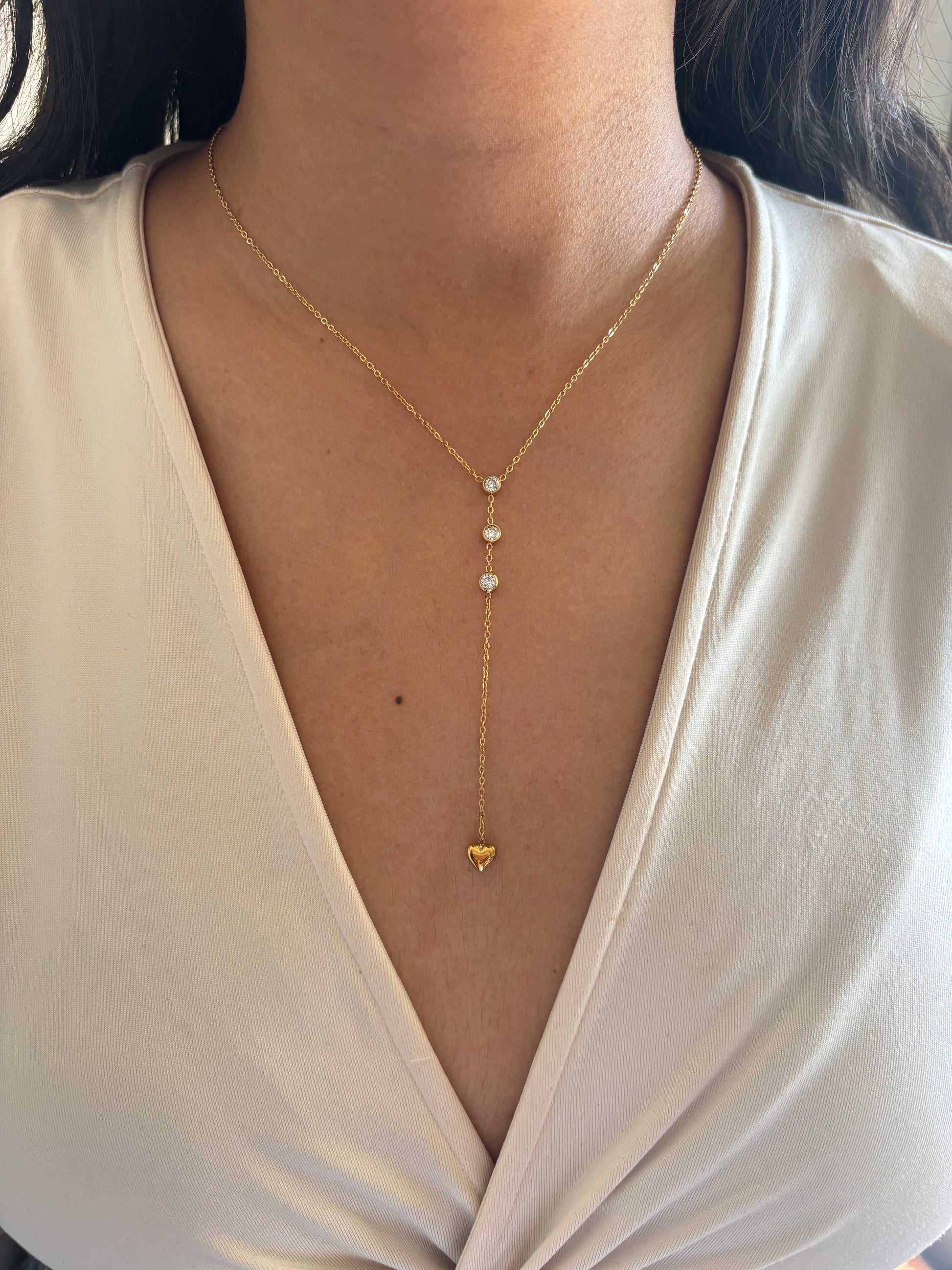 Steal hearts with the Amelia Y-Drop Heart Necklace—a playful twist on timeless elegance. This charming solitaire pendant features a delicate heart suspended from a graceful Y-shaped chain, creating an effortlessly chic look that catches the light beautifully.