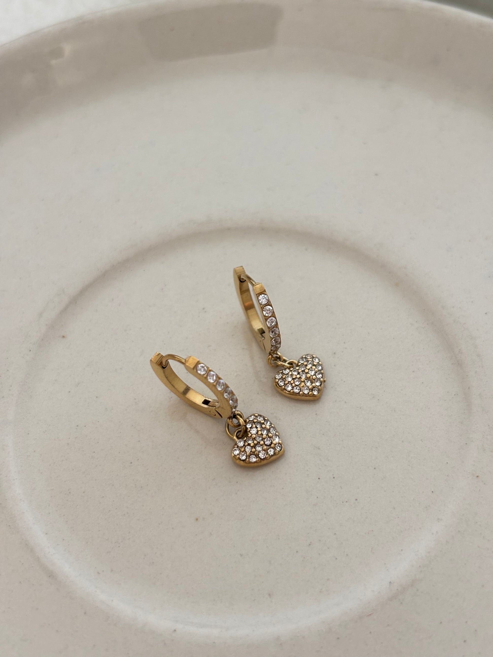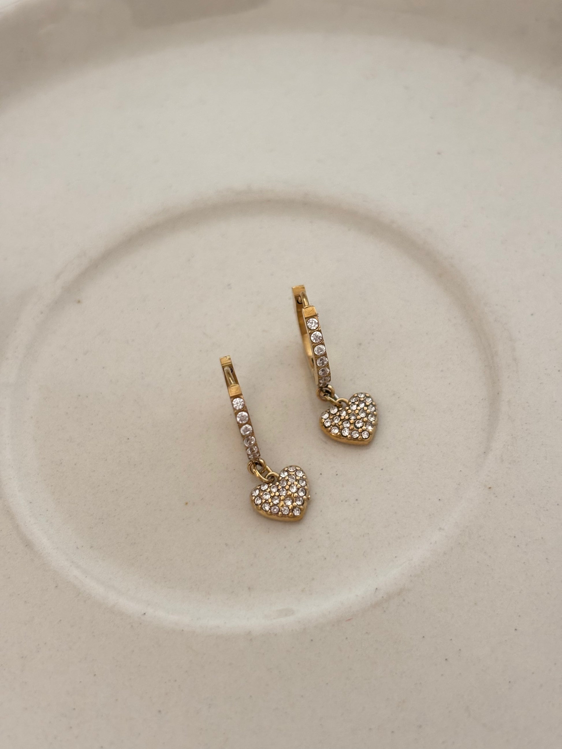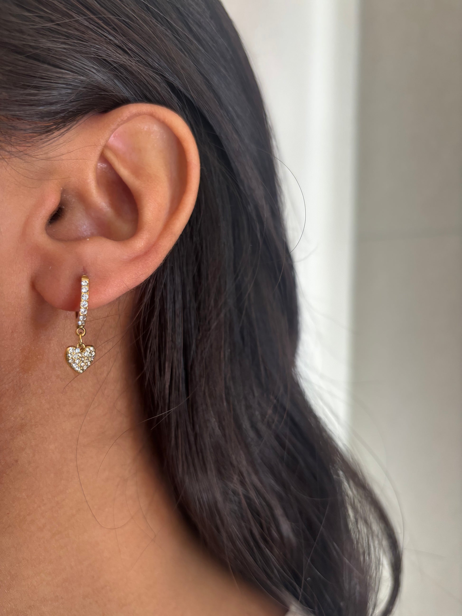 Adorable heart-shaped huggies that sparkle with charm! These cute little earrings feature shimmering bling details that catch the light beautifully, making them perfect for adding a touch of playful glamour to any look.