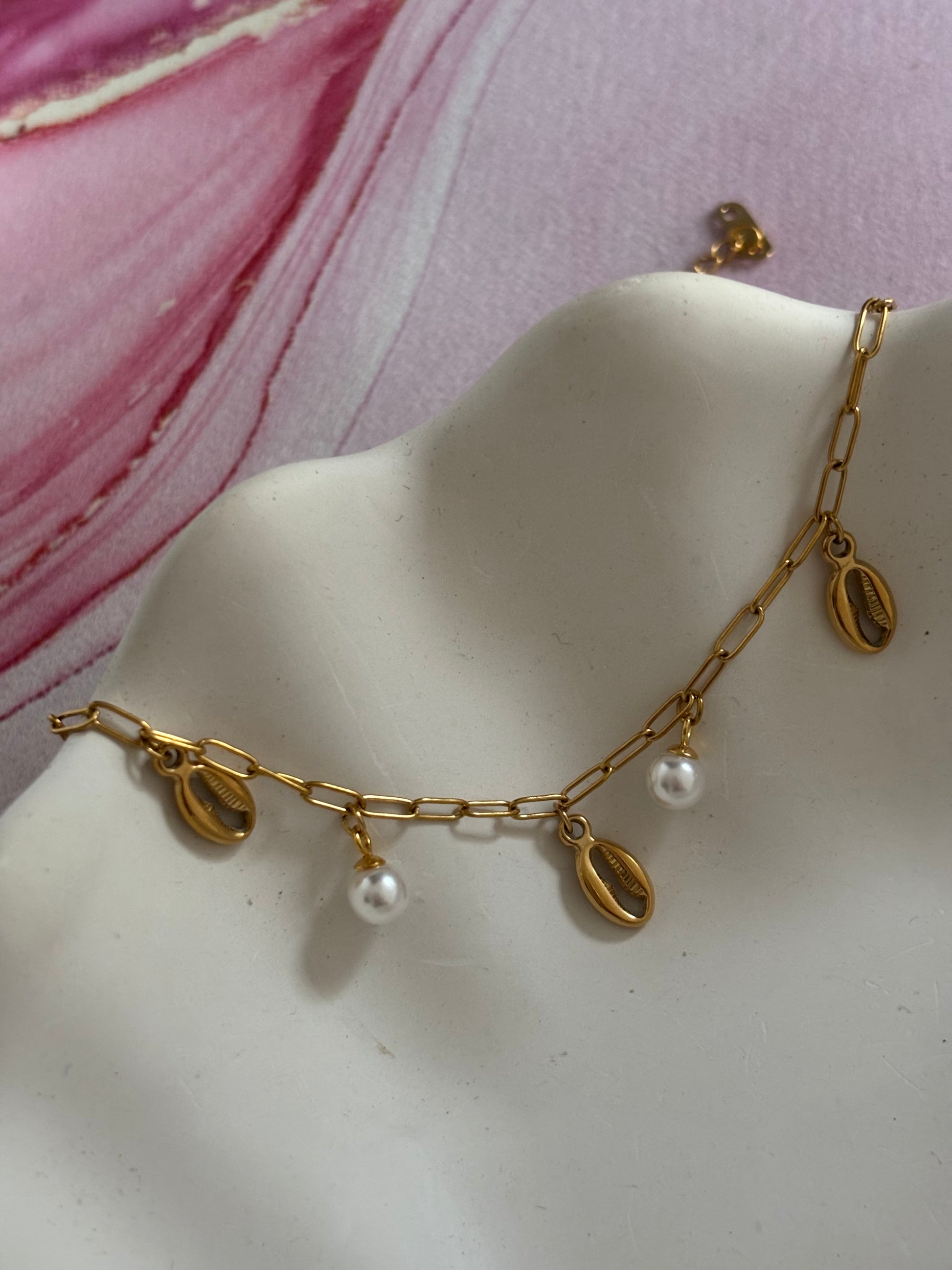 Capture the carefree spirit of the ocean with this Bean Pearl Shell Bracelet. Its delicate shells and pearly beads bring the beach’s magic to your wrist, perfect for adding a playful, breezy vibe to any outfit. Embrace the sea’s charm wherever you go!