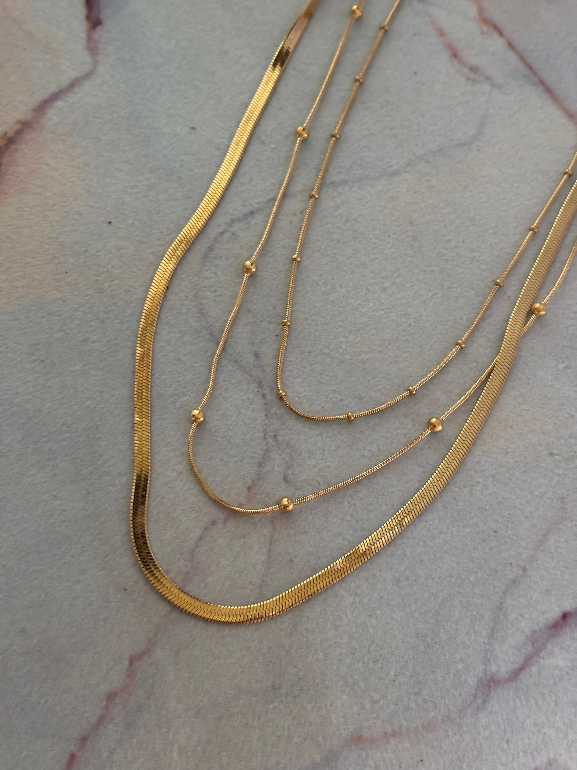 Add instant glam to any outfit with the Cara Triple Layered Chain. This playful three-layer design creates a bold, stylish statement that’s perfect for mixing and matching. Lightweight and versatile, it’s your go-to accessory for slaying every look with effortless charm.