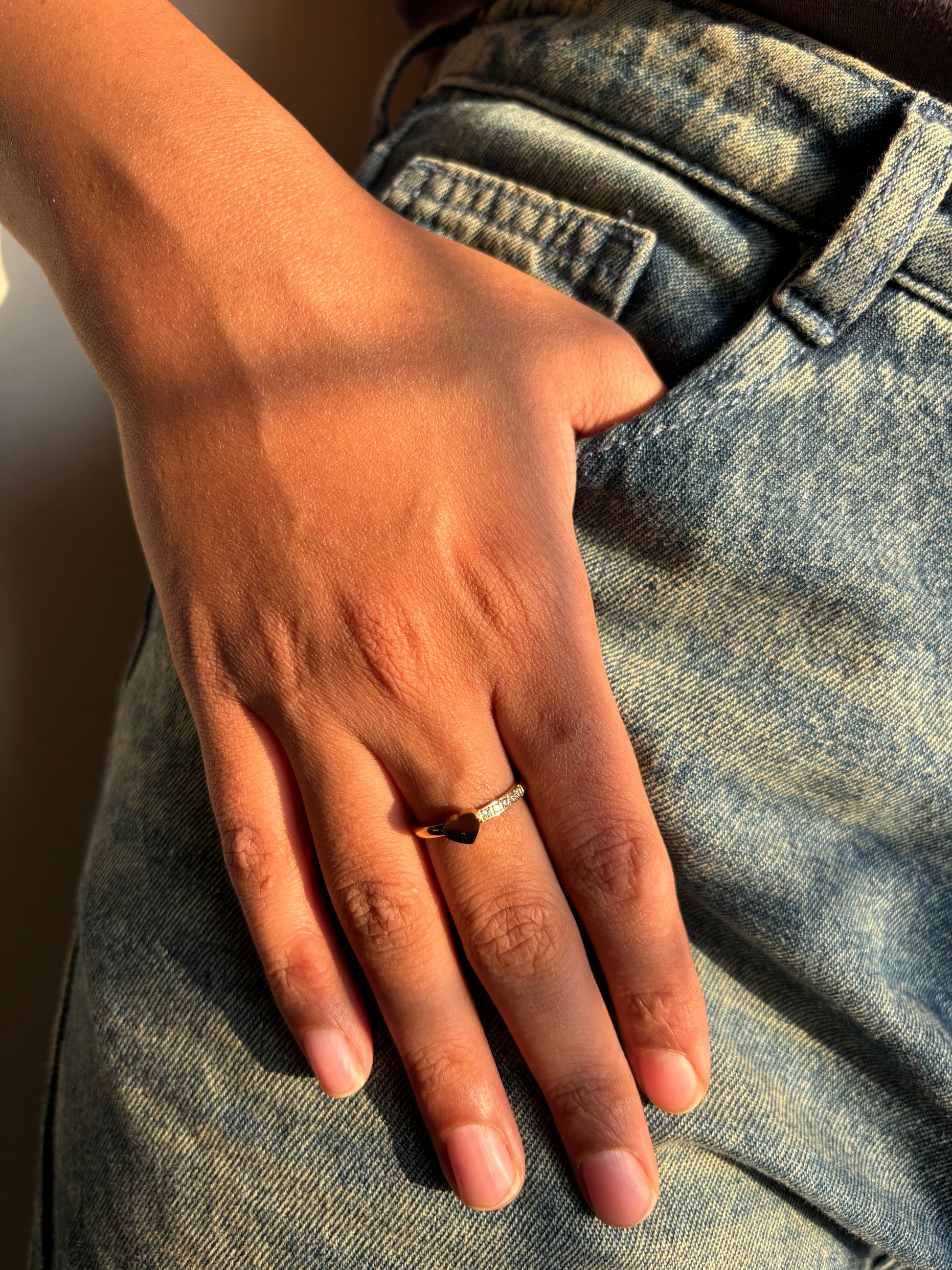 Get ready to fall head over heels with our Cupid Love Ring! This unique ring is studded with delicate details that are sure to steal your heart. With its dainty design, it's the perfect accessory to add a touch of romance and charm to any outfit.