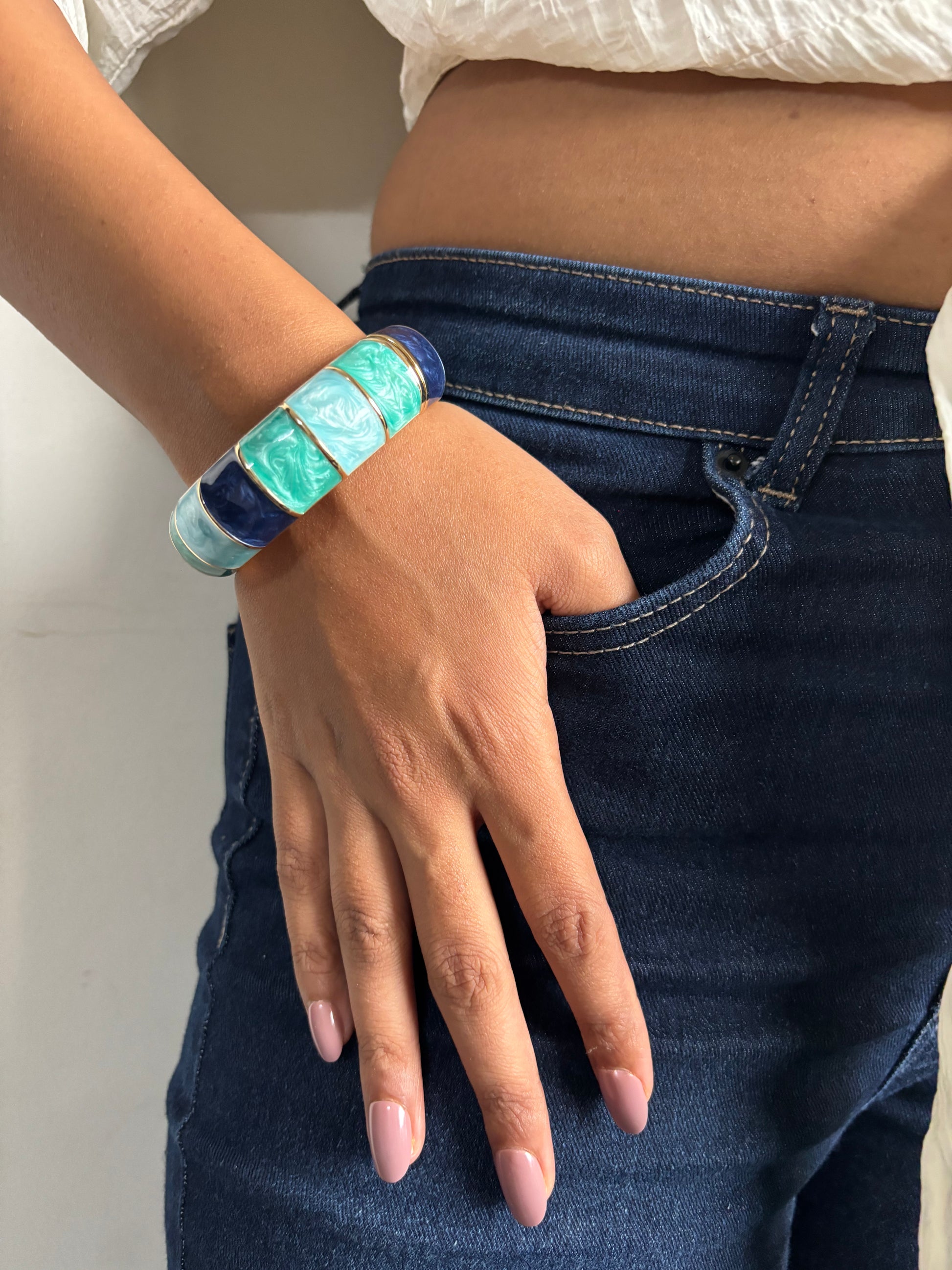 Add a splash of vibrant charm to your look with this Cyan Chunky Bangle crafted from brass. Its bold, Durable and eye-catching, this bangle brings a fun pop of color and style to your accessory collection.