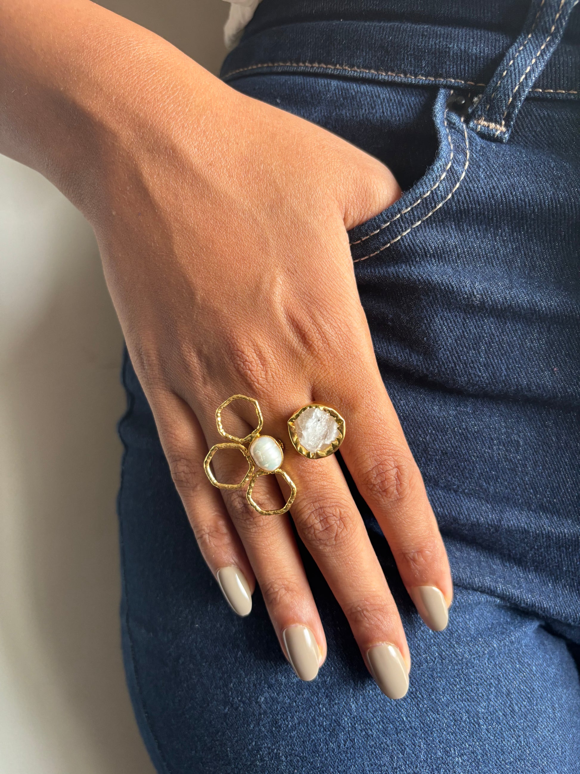 Unleash your inner flower child with this sassy Flora Natural Stone Adjustable Ring! Crafted from brass with a stunning natural stone centerpiece, this ring adjusts to fit your finger perfectly. Pack this beauty for your next vacay – it's the ultimate accessory to make your summer outfit bloom with personality!