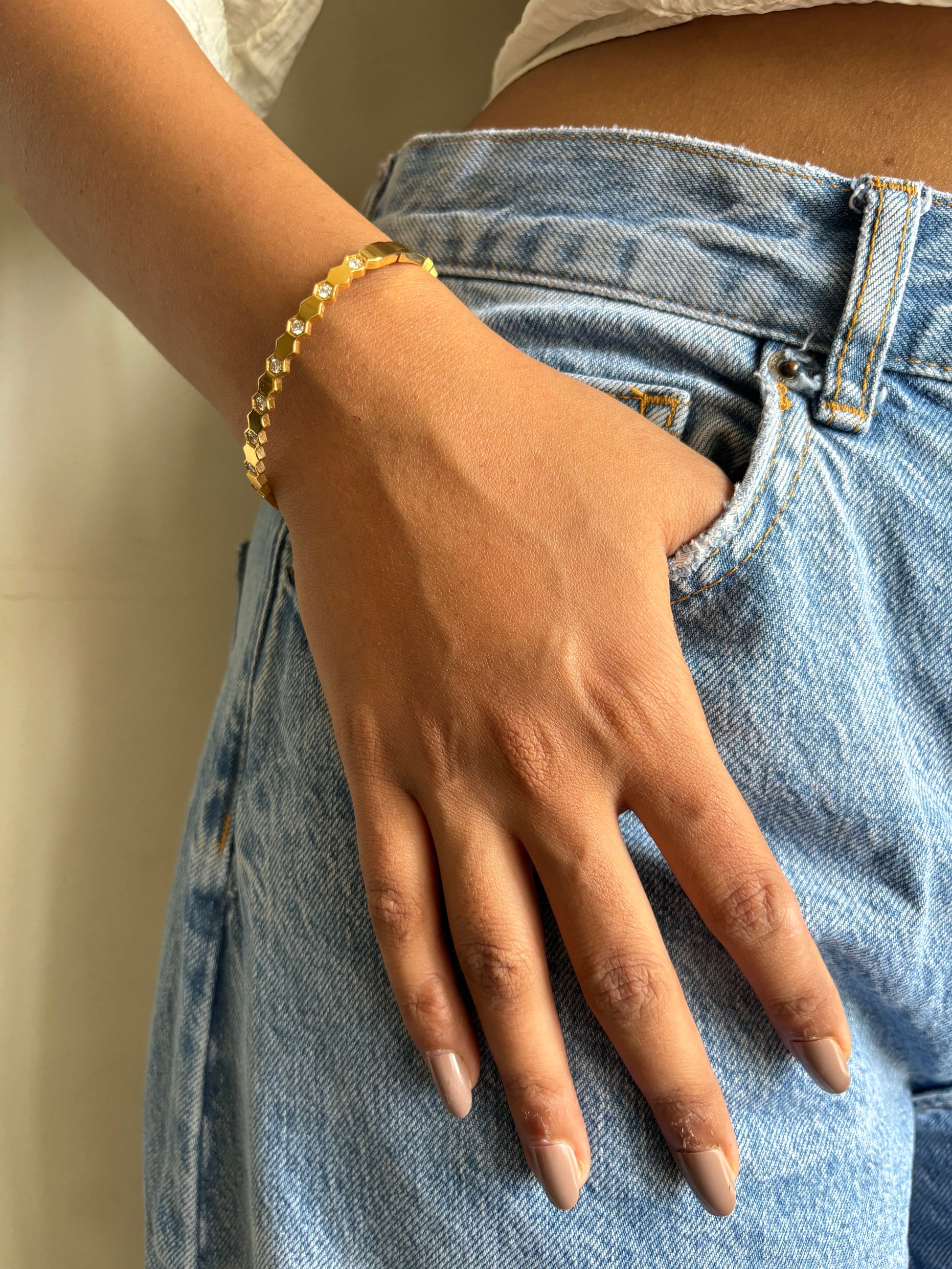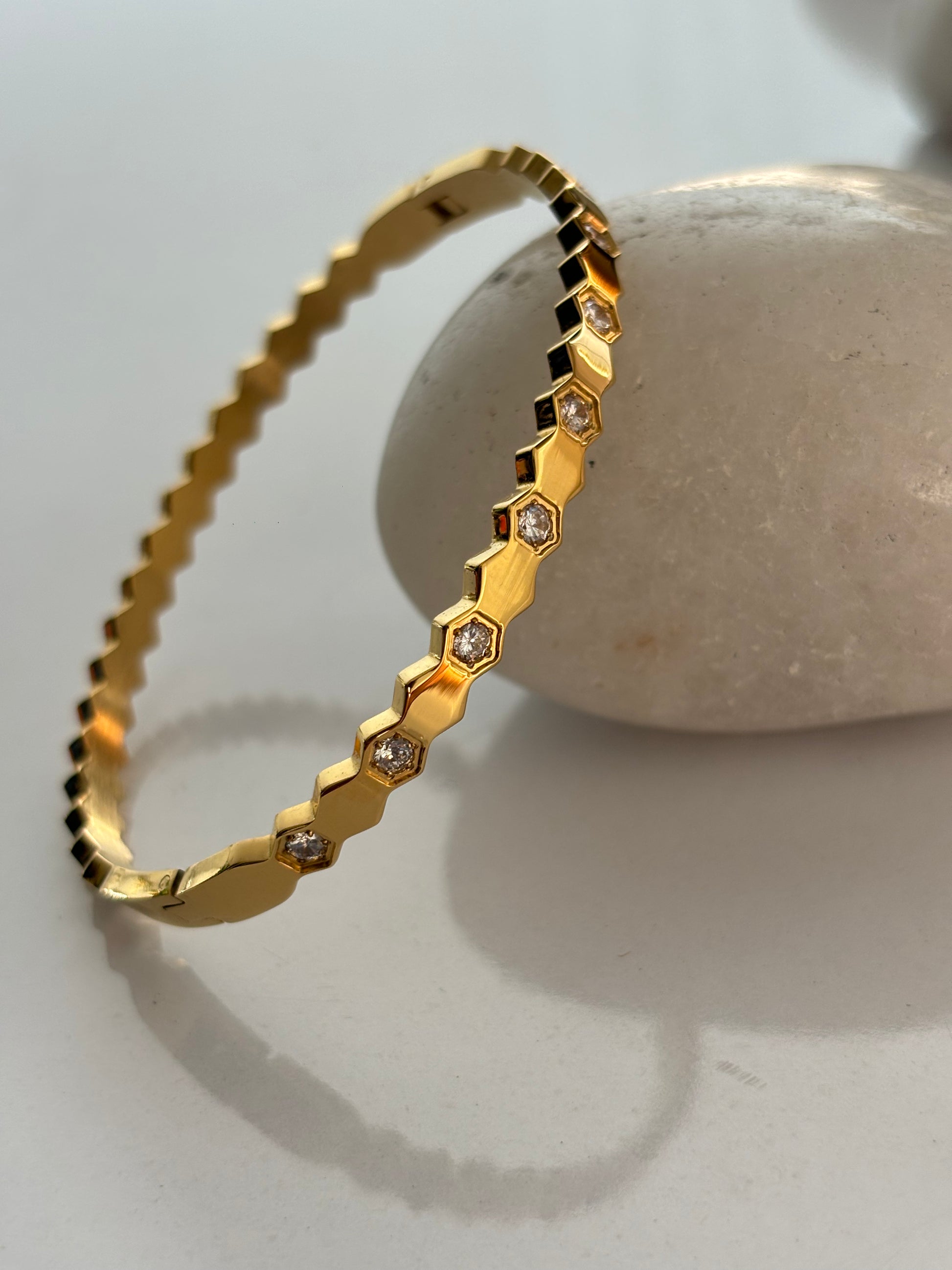 Its unique hexagon design stacks perfectly to create a bold look. Perfect for those who want to make a statement without saying a word.