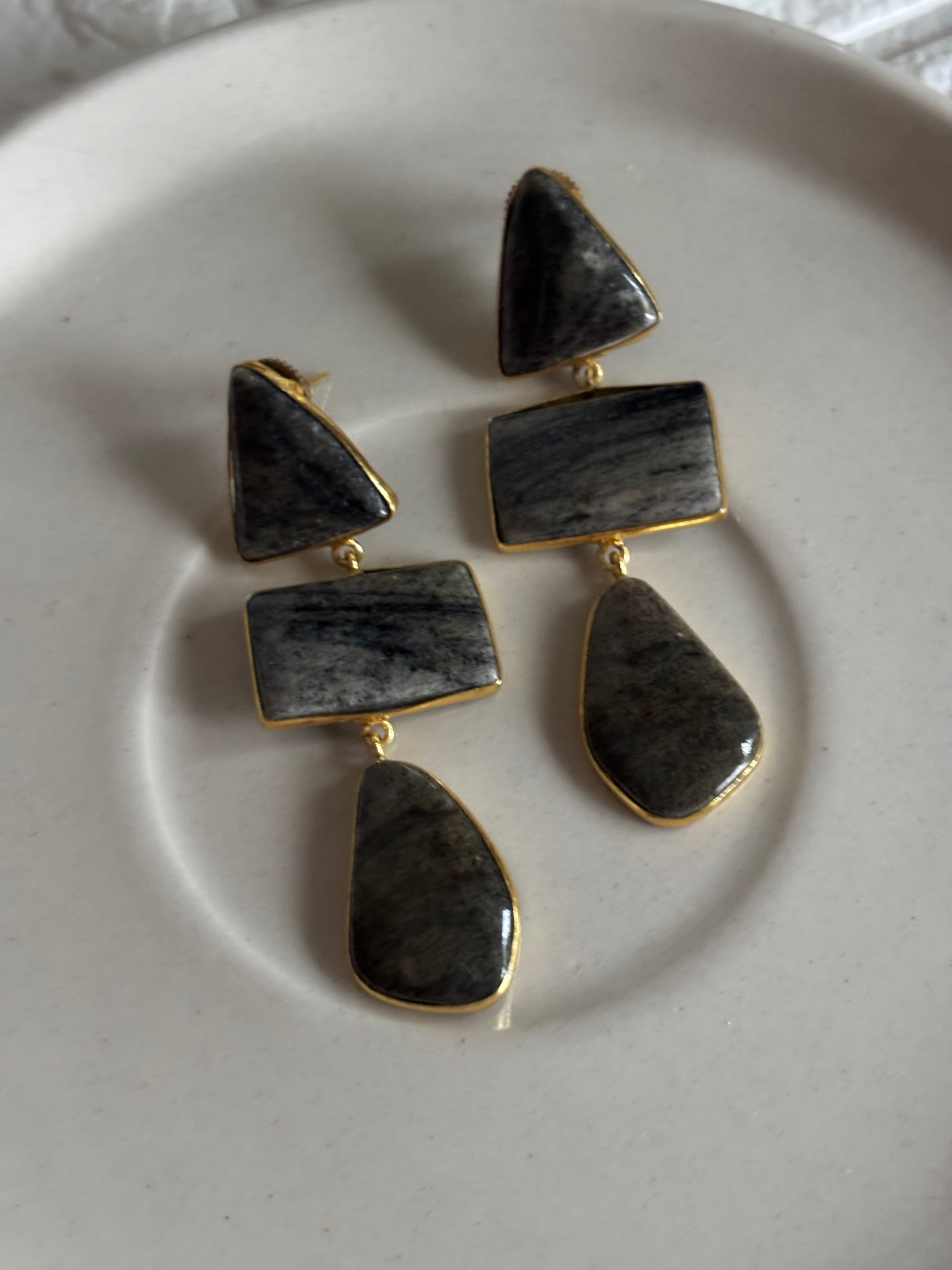 Add a touch of modern charm with this Grey Garnet Natural Stone Dangler set in brass. Its sleek, contemporary design pairs effortlessly with any outfit, while the natural stone adds a unique sparkle that’s sure to catch eyes. Perfect for those who love playful, stylish accessories that stand out with subtle elegance.