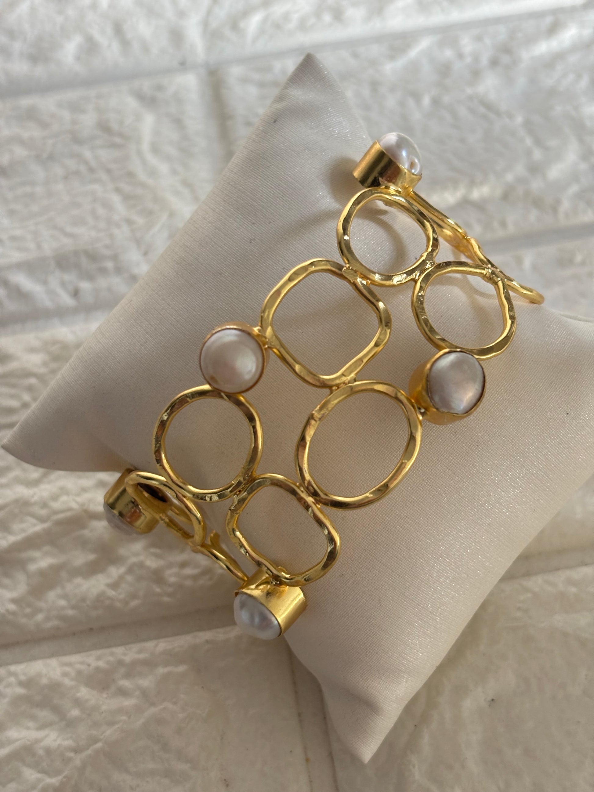 Maze Pearl Adjustable Cuff- Brass