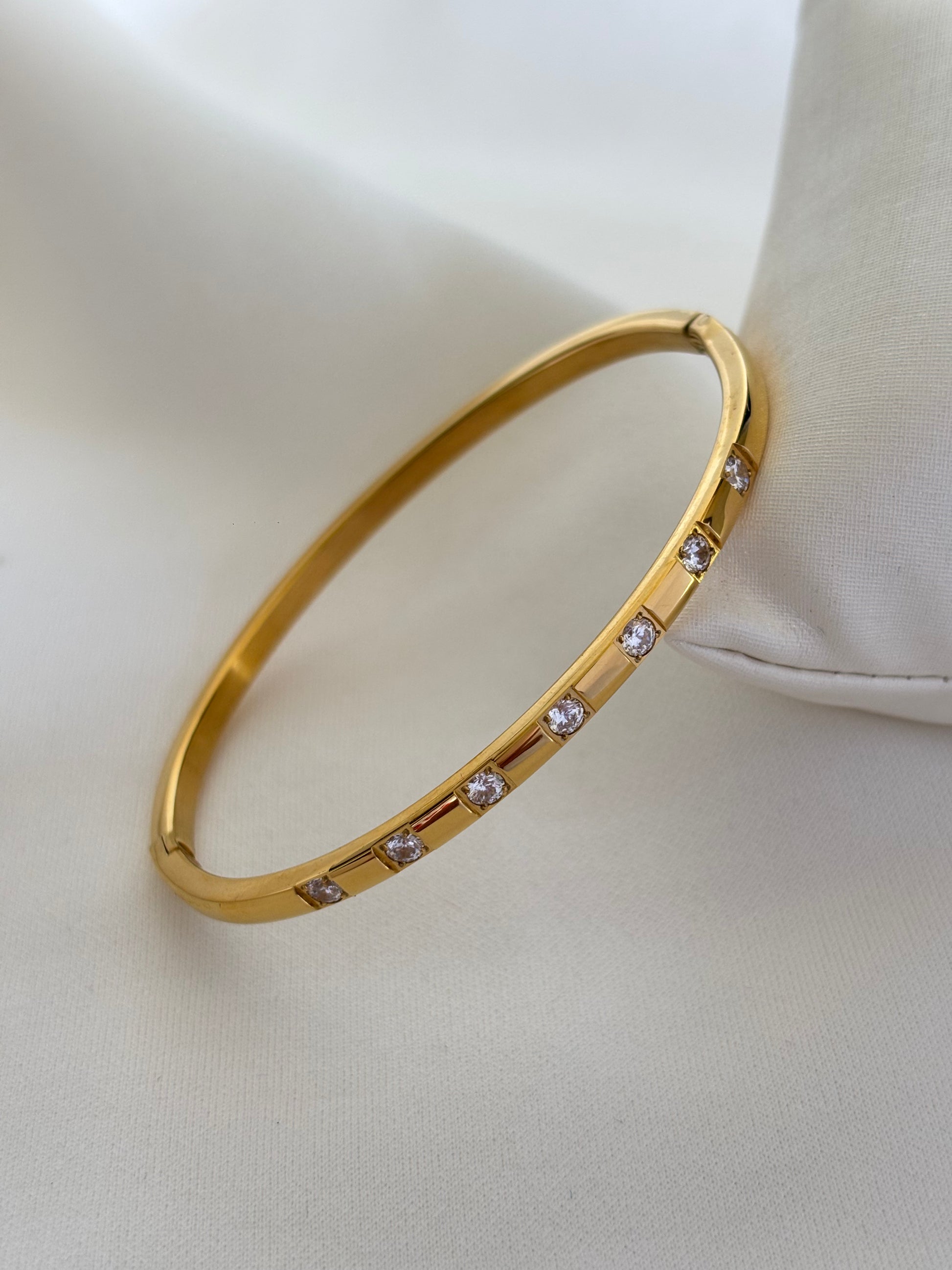 Add a touch of sparkle to your wrist with the Meraki Gold Studded Bracelet. Its studded design and stackable style let you mix, match, and show off your unique flair effortlessly. Perfect for layering or wearing solo, this bracelet turns everyday looks into a chic statement.