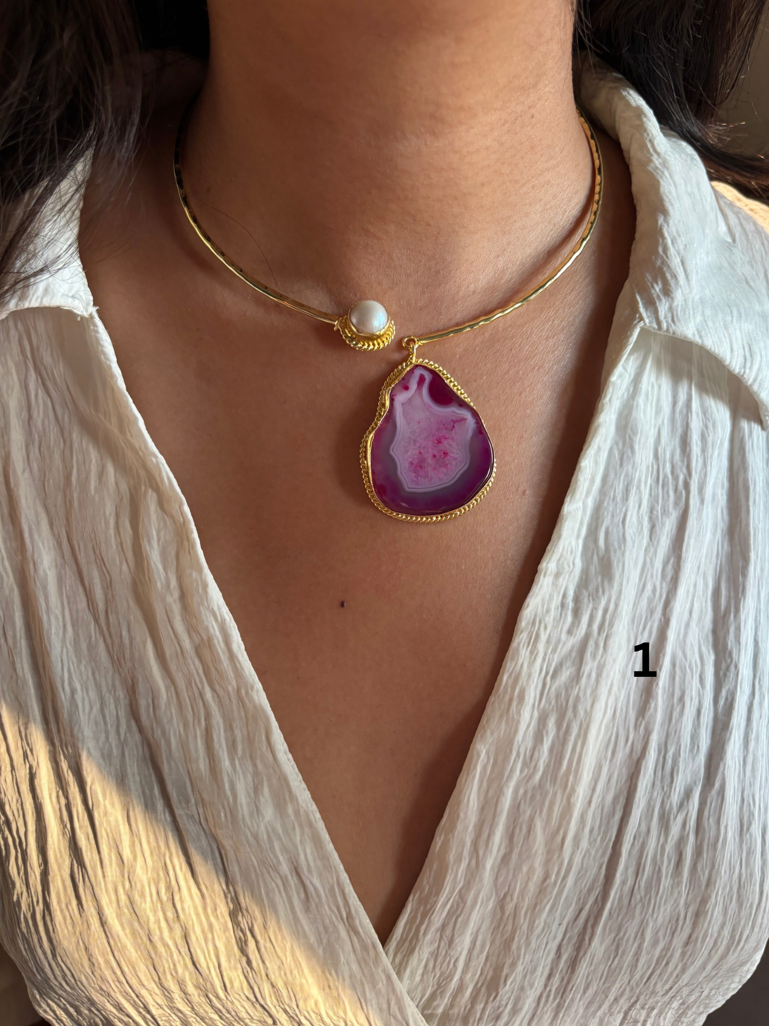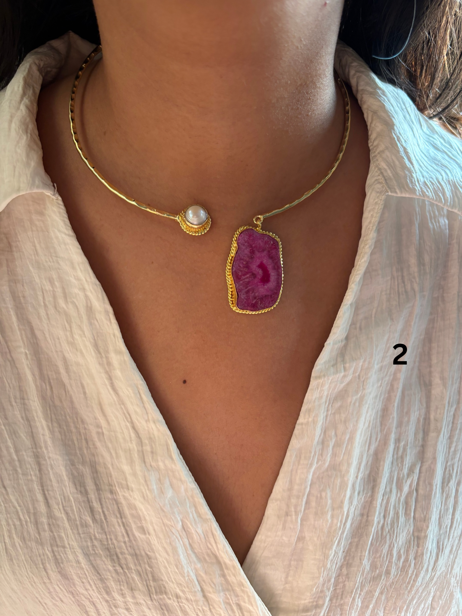 Add a playful pop of charm with this Mix Color Natural Stone Hasli crafted in brass. Each vibrant stone is uniquely set, giving you a one-of-a-kind accessory that glows with natural beauty. Perfect to brighten up any outfit with its colorful sparkle!