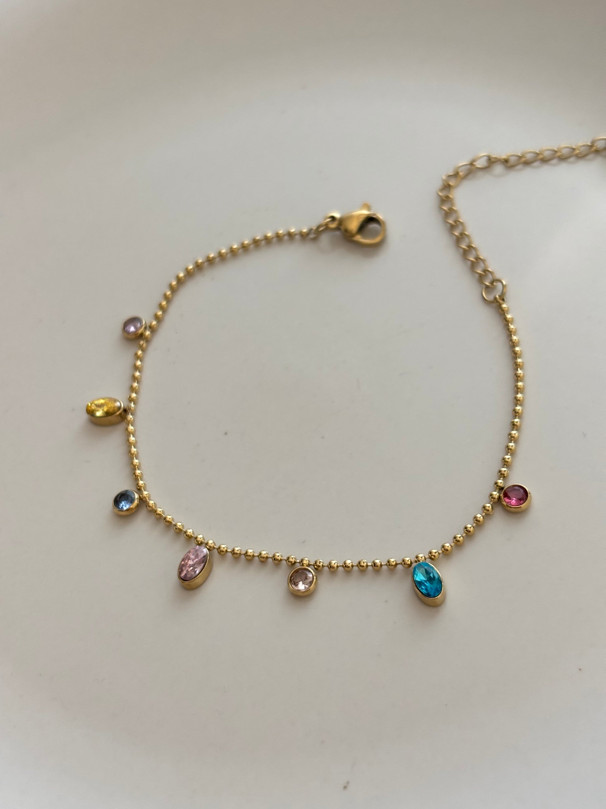 Elevate your everyday style with this versatile Multi-Oval Charm Bracelet. Featuring a thoughtfully curated mix of colors, each oval charm adds a unique touch to your wrist. The minimalist design pairs effortlessly with any outfit, making it perfect for casual wear or special occasions.