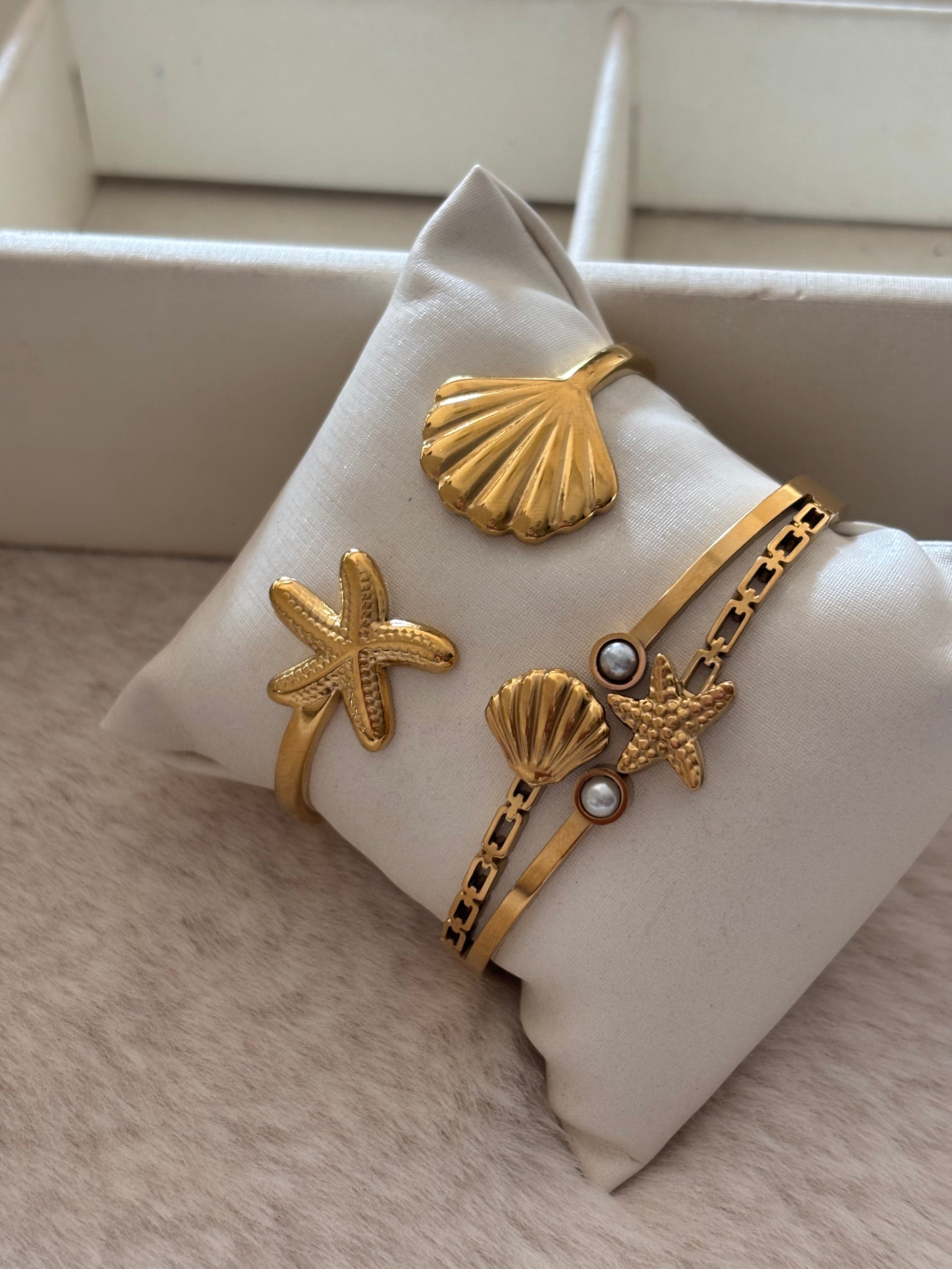 Ride the rhythm of the ocean with this breezy bracelet stack that brings coastal vibes straight to your wrist. Each piece captures the essence of sea waves and sandy shores, perfect for those who live for that laid-back, beachy energy.
