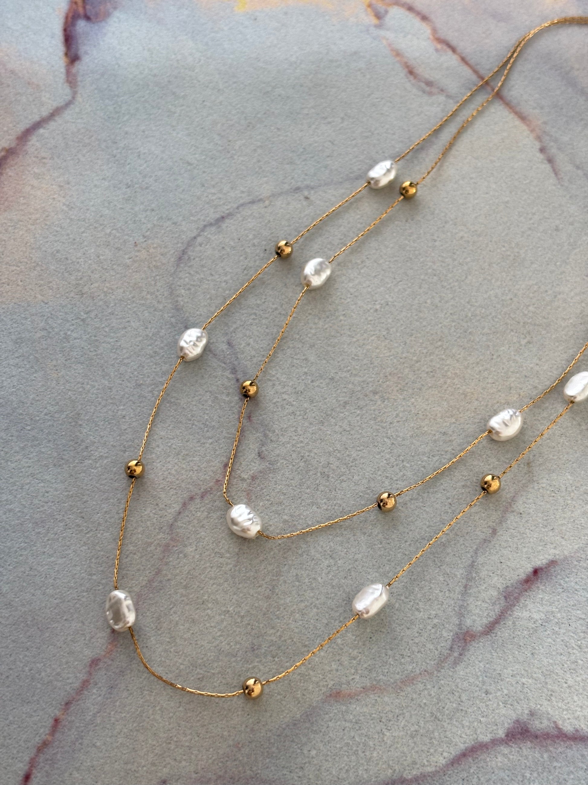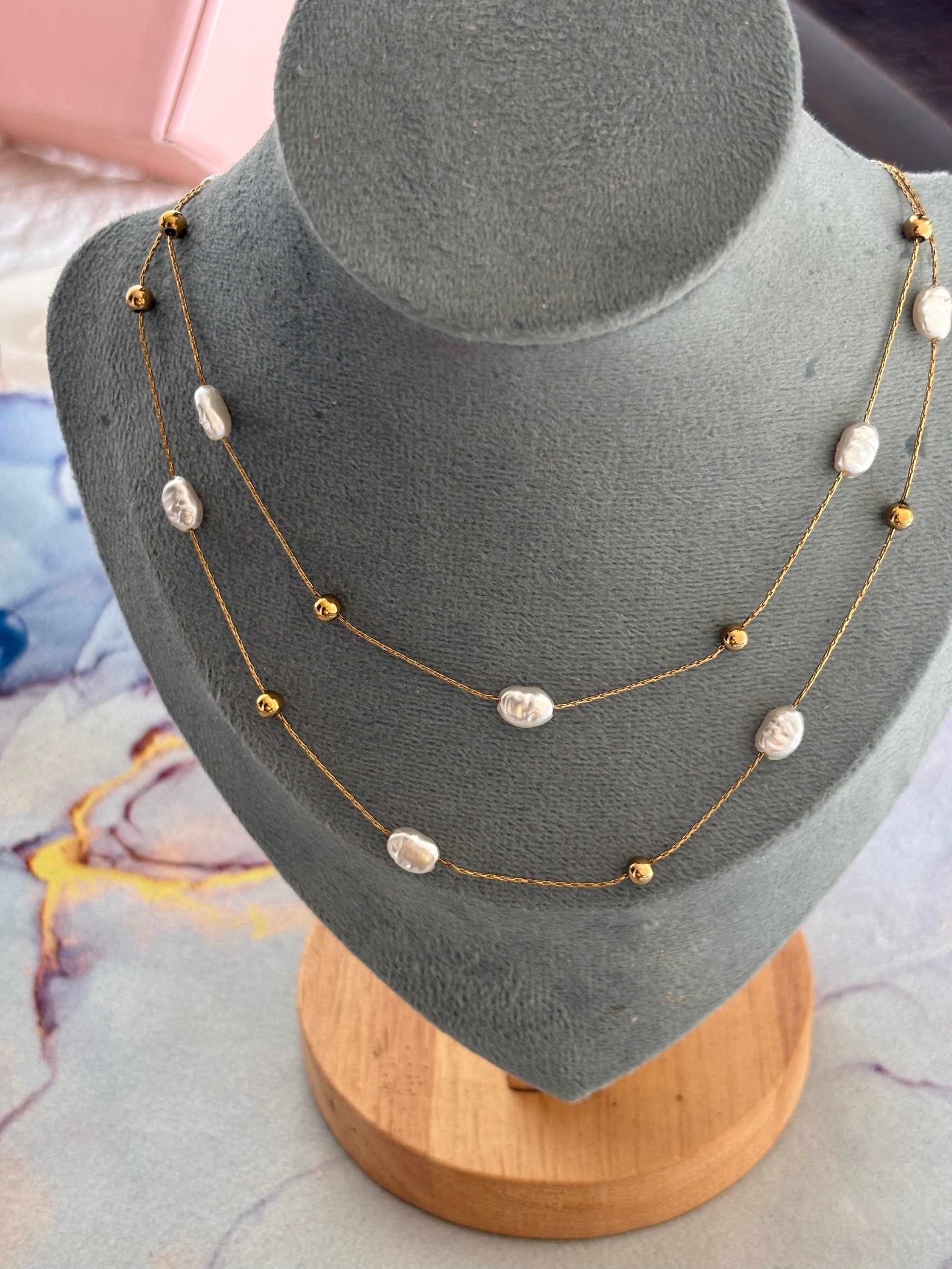 Featuring delicate pearls arranged in two dainty layers, it’s the perfect pretty accessory to brighten any outfit. Lightweight and effortlessly charming, it brings a playful sparkle to your day.