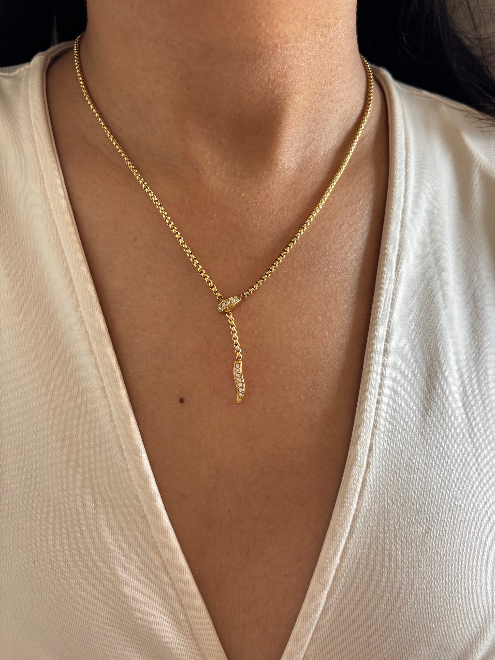 Slip on the Serpenti Fortune Necklace and watch how it effortlessly turns heads. This sleek, studded design adds a playful edge to your style, making every outfit feel a little more daring. Perfect for those who love smart, standout accessories with a touch of boldness.