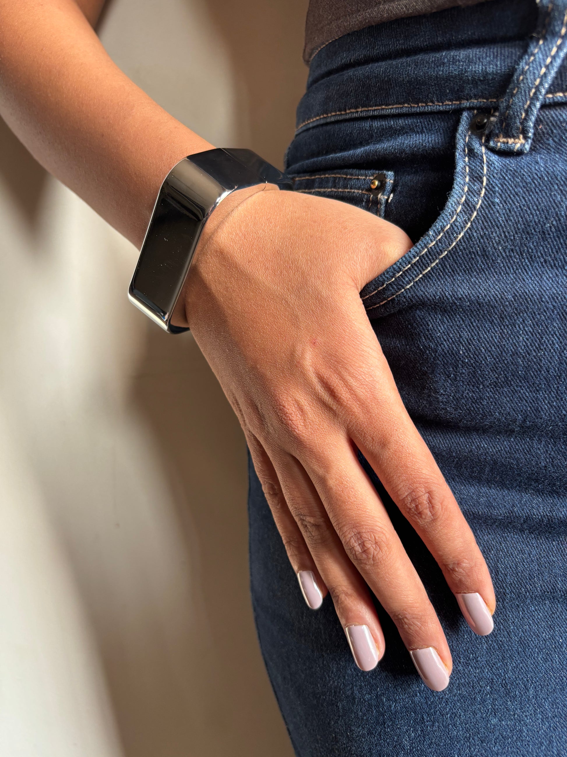 Make a statement with this silver square chunky bracelet crafted from brass. Its bold, edgy design adds a striking touch to any outfit, perfect for those who love to slay with confidence and flair. Whether stacking or wearing solo, this bracelet brings playful attitude and standout style to your wrist.