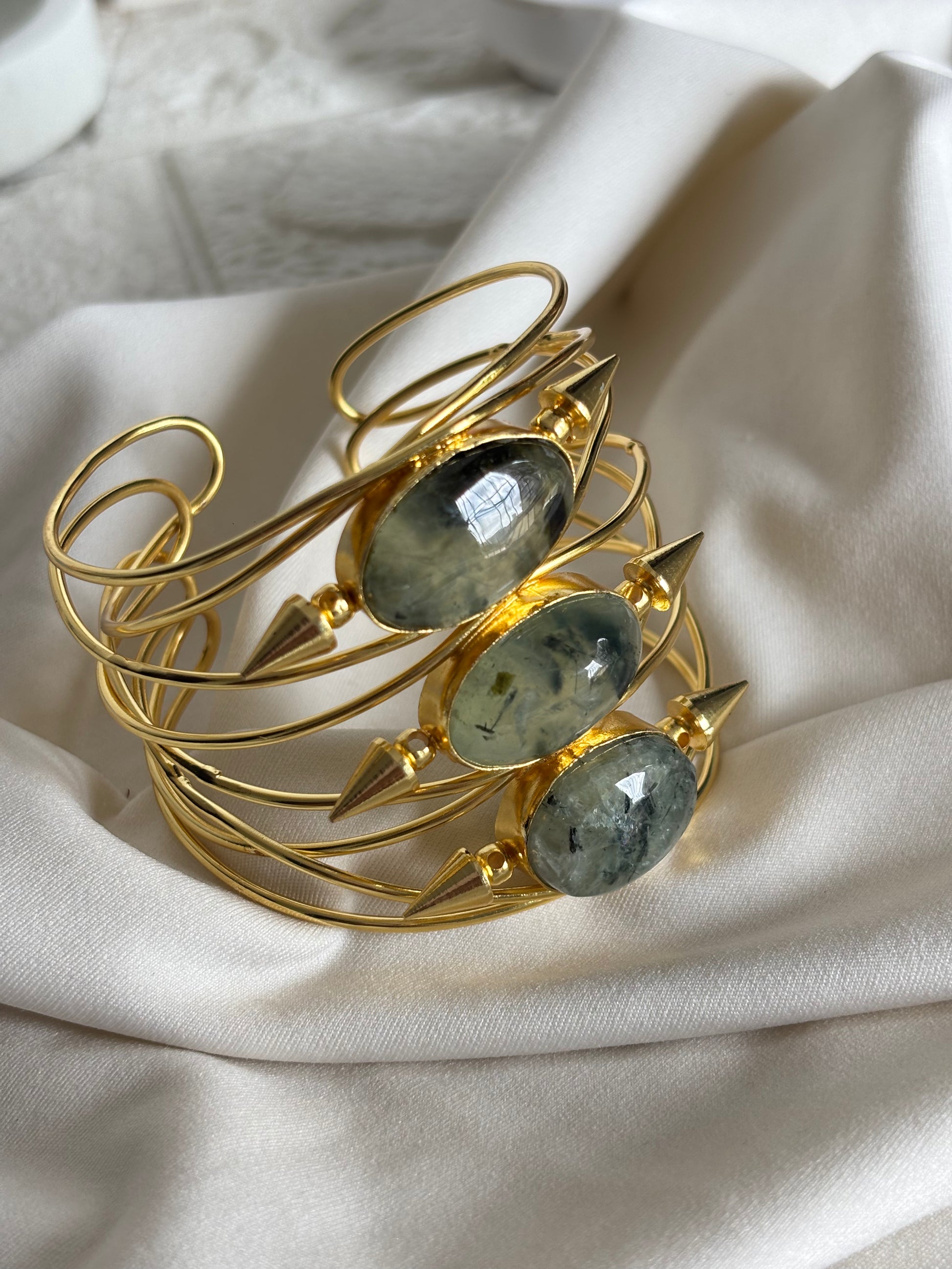 Caroline Natural Stone Adjustable Cuff- Brass