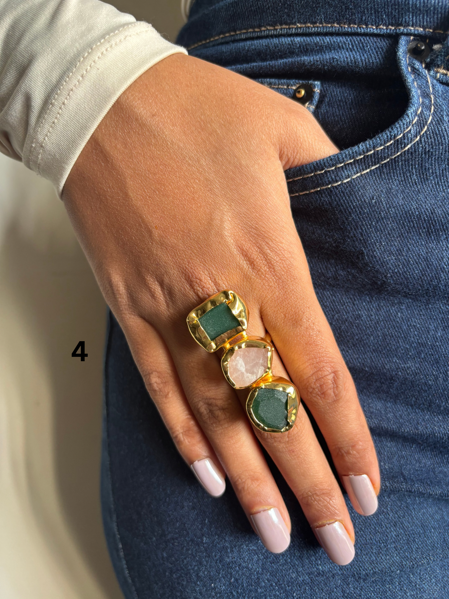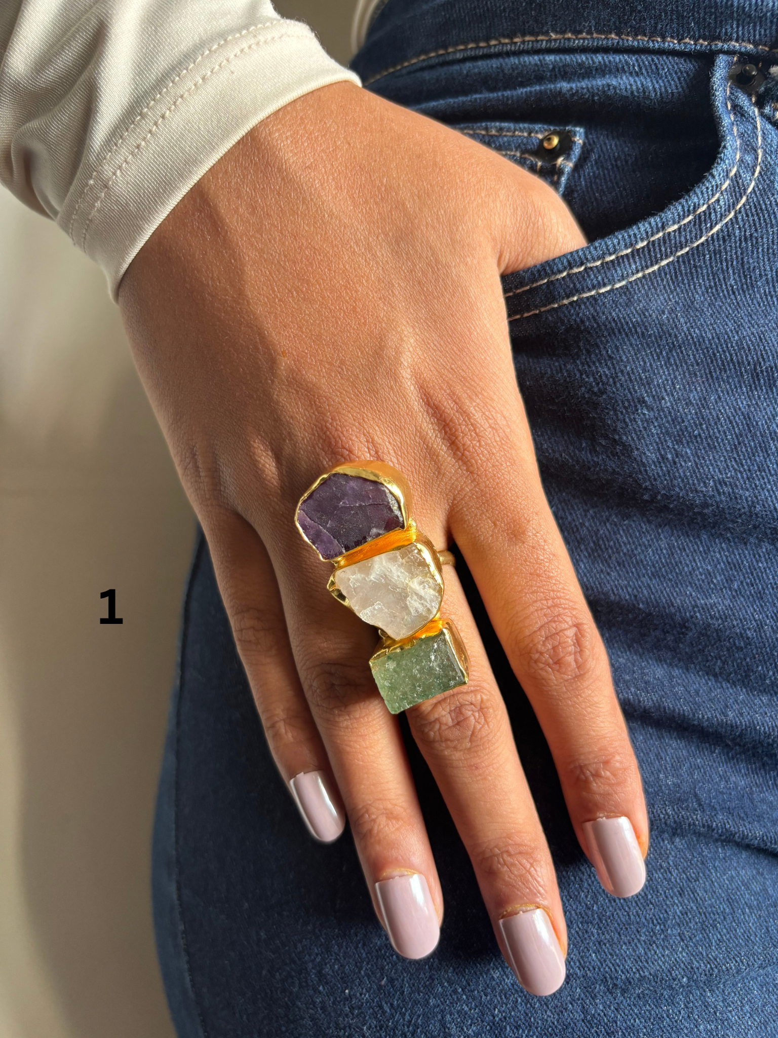 Add a burst of color to your style with the Trinity Natural Stone Ring! This playful accessory blends vibrant hues and natural stone charm, making every gesture a joyful splash of personality. Perfect for those who love to mix fun with elegance.